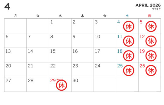 4月、5月の休診日のお知らせ